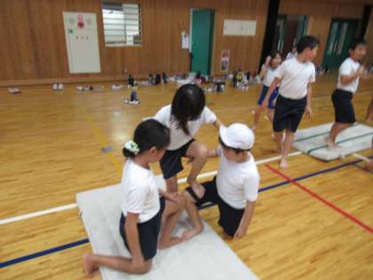 組体操の練習に取り組んでいます。今週は,団体技にも挑戦しました。人数が増えると難易度も上がってきますが,みんなで声をかけ合いながら協力する姿が見られます。安全に十分気をつけながら,運動会本番に向けて頑張ります。