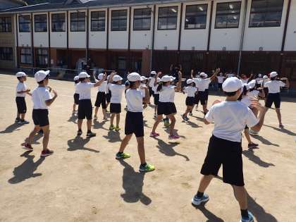 今週は,運動会に向けての第一回全校練習が行われました。爽やかな秋空の下,入場行進や全校競技の練習に取り組みました。全校生そろっての練習ということもあり,それぞれのチームから元気なかけ声が響いていました。