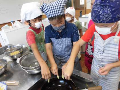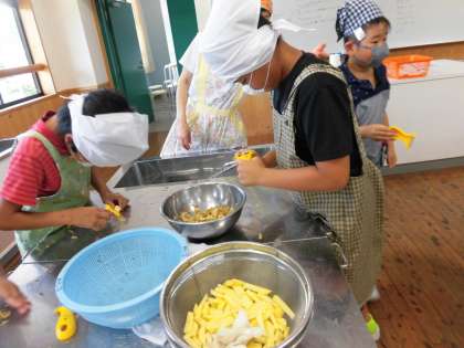 ひかり学級の畑で収穫したじゃがいもを使って,フライドポテトを作りました。