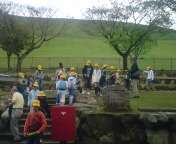若草山に到着しました。緑がとても鮮やかです。雨は今のところあがっています。