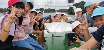 近鉄賢島駅から、船に乗って、みさきの家のなかよし港に向かいます。天気は曇りですが、頬に当たる潮風がとてもよい心地です。