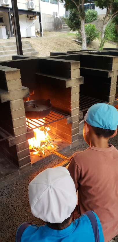 野菜も上手に切れました。かまどの火もうまくつき、いよいよ完成に近づいています。みんなワクワクしています。