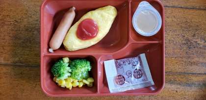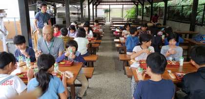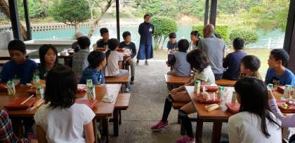1日目の朝食は、昨日、野外炊事をした場所でいただきました。すぐ側を深谷水道が流れ、朝風がとてもよい気持ちです。