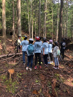 塔下古墳に着きました。みんな元気です。古墳について学習しながら少し休憩しています。