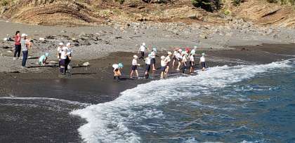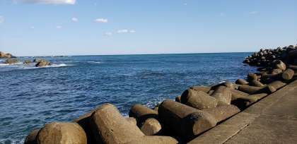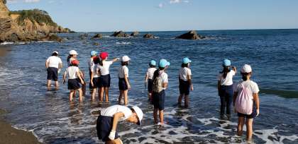 強風で波が立っており、また潮位も思ったより高く磯観察はできませんでしたが、波打ち際で海の感触を楽しんだり、記念の石を探したりして楽しみました。