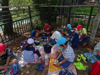 お昼は,グループに分かれてお弁当を食べました。好きな遊び・食べ物の話をして友だちのことを再発見していたようです。