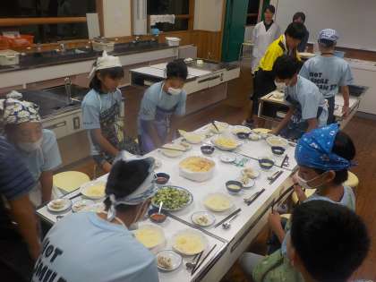 晩ご飯も自分達で作って食べました。最後にナイトゲームをして盛りだくさんの1日を終えました。