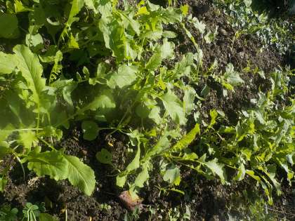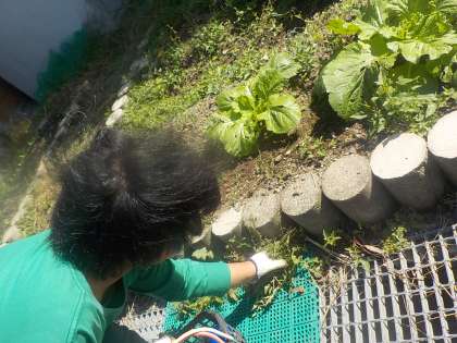 ダイコンとハクサイが大きくなりました。雑草の草抜きも頑張っています。