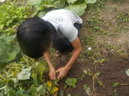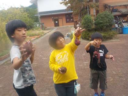 生活単元学習で育てたサツマイモを収獲しました。地面の下で大きく育ったサツマイモを見つけて大喜びで収獲しました。