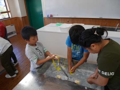 学活の時間に,運動会で使用したハチマキを心を込めて手洗いしました。ゴシゴシと力強く洗うことで,泥で汚れていたハチマキも元のように綺麗になりました。シワもピンと伸びて,子ども達は満足そうでした。