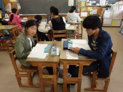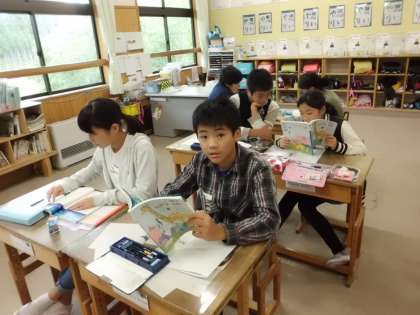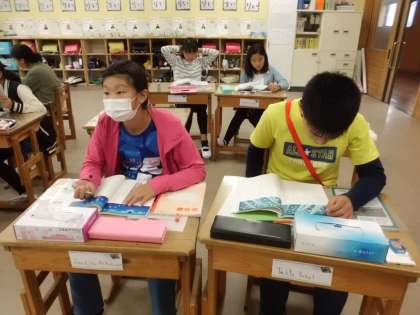 今日の国語は,「やまなし」の二つの場面を,視点にそって比較しながらペアごとで読み合いました。前回までの学習で,強く・弱く・明るめに・暗めに・間を開けてなど,各々で音読する工夫を教科書に記入していました。それをもとに音読しました。