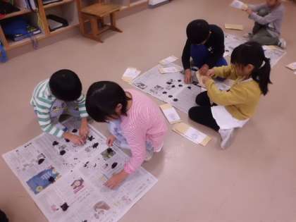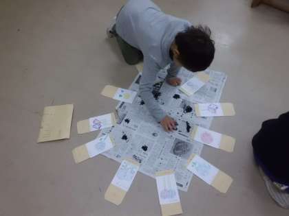 種を入れる袋が出来上がりました。早速,種を袋に入れる作業をしました。「同じくらいに袋に入れるのって難しいな。」と言いながら,慎重に袋に入れる姿が見られました。