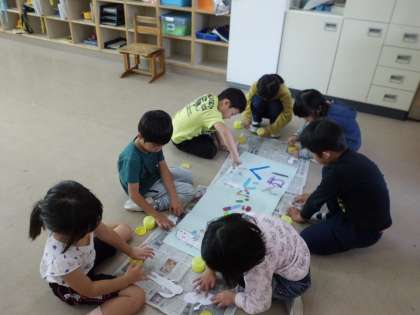 発表する「くじらぐも」のポスターやプログラムのめくりを作りました。みんなで協力しながら,手際よく仕上げていく姿に子どもたちの成長を感じました。当日,プログラムは舞台上に,ポスターは体育館後方に掲示されますのでご覧ください。