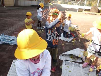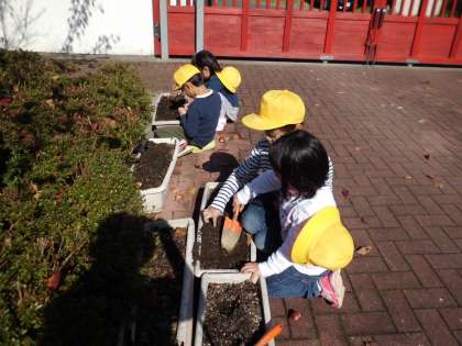 春に咲く花の球根を植えました。チューリップとアネモネの2種類を植えました。2年生になるころ,綺麗な花を咲かせてくれることでしょう。その後,アサガオのつるを使って,リースの土台作りをしました。ドングリや松ぼっくり等を飾り付けて,素敵なリースに仕上げていきたいと思います。