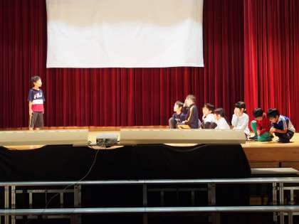 学習発表会の体育館練習が始まりました。体育館いっぱい響く声で,また大きな動きで発表ができるようにがんばっています。