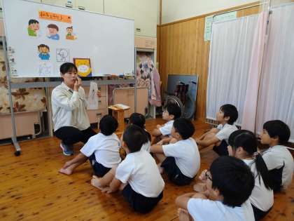 養護教諭より,保健指導がありました。風邪やインフルエンザが流行る季節が近づいてきました。せきやくしゃみをするときのエチケットを知ったり,鼻水をしっかりかむことの大切さを学んだりしました。