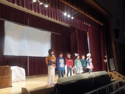 練習を重ねて,友情出演の友達との練習でも緊張せずに落ち着いて大きな声で表現することができるようになってきました。友達と協力して作り上げてきた劇を明日は,楽しんで発表してほしいと思います。