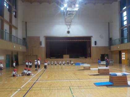 体育の時間にとび箱遊びに取り組んでいます。