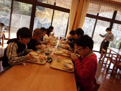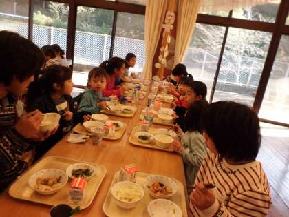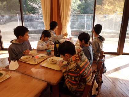 11月下旬から,5年生と一緒に給食を食べています。5年生に食べ方やマナーなどを優しく教えてもらいながら,美味しい給食をいただいています。5年生,ありがとう!