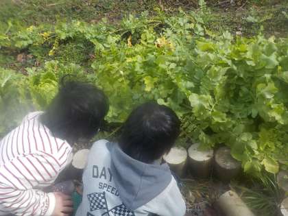 ダイコンとハクサイが大きくなり,収穫できそうになってきました。葉を食べていたナメクジやイモムシをみつけて退治しました。収獲までしっかり見守っていきたいと思います。