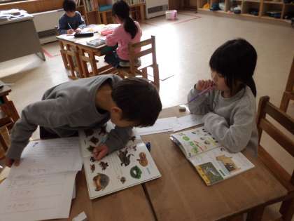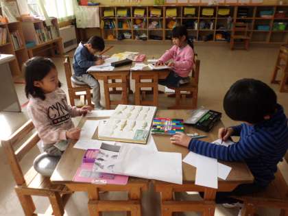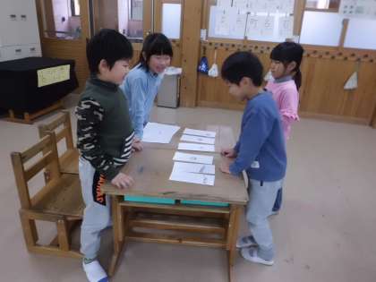 物には,「まとめてつけた名まえ」と「一つ一つの名まえ」があることを学習しました。そのことをもとにして,お店屋さんごっこをすることになりました。「ペットショップ」「さかなや」「おかしや」「がっきや」のお店に決まり,準備をしています。