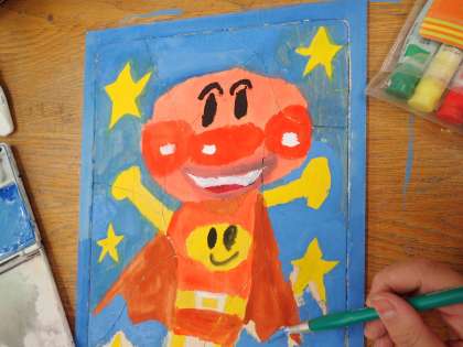 図工では「ゆかいなパズル」を作っています。木の板に自分の描きたいものをデザインし,絵の具でぬりました。それを,電気のこぎりで切っていきます。楽しいパズルがたくさんできそうです。