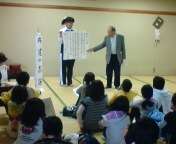 今日の活動一つ目は京北の民話です。3人の先生方にお話していただきます。京北6つの地域に伝わるお話を聞いています。
