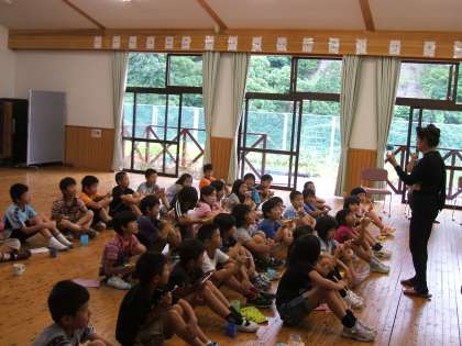 お話を聞いた子どもたち。給食後の歯磨きではいつも以上に真剣に,教えていただいたことを確かめるように歯磨きをしていました。
