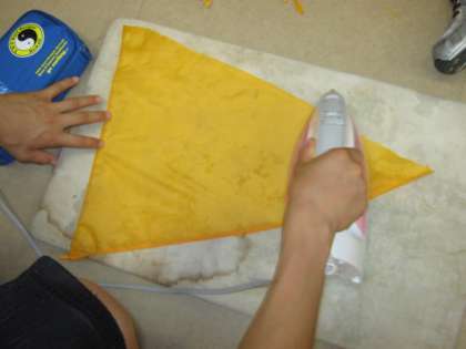 折れた傘からエコバッグができました。傘の部分から三角形の形に6枚切り取り,4枚でカバンを作り,2枚で持ち手を作りました。思った以上にしっかりとしていて,使いやすそうです。今週中には,全員できあがりそうです。