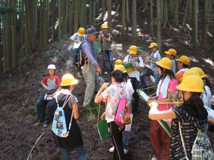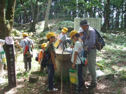 7月13日(水),暑い中,周山城跡をめざして山歩きをしました。「明智光秀」が建てたという周山城。子ども達は,いろいろなお話も聞かせていただき,驚いたり喜んだりしていました。