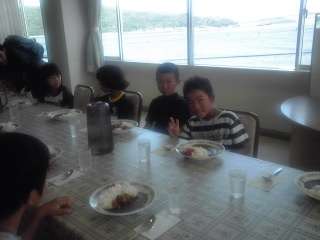 水族館での活動を終えて,海を見ながらおいしいカレーライスを食べています。今回の宿泊学習最後の食事です。