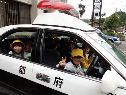 ちょうど交番へ行ったときに,おまわりさんがパトカーをあけて中に乗せてくださいました。子どもたちは,大喜びでした。