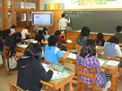 写真は,5校時の高学年の授業の様子です。5年生は,「国土の地形の様子」を,6年生は,「分数×分数」の学習をしています。先生やお友達の話をしっかり聞いて勉強しています。