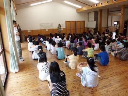 今日はプール開き。1・2年生は「水遊び」,3年生以上は「水泳」学習が始まります。朝会では飯田先生がルールと安全面について,仲田先生が健康面と衛生面についてお話をしました。先生のおっしゃることをしっかり守ってプールでの学習に取り組んでほしいです。