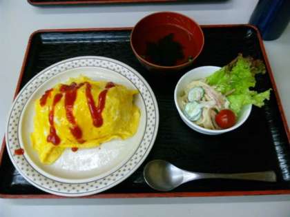 昼食の時間になりました。おなかはぺこぺこ。今日のメニューは,オムライスです。しっかり食べて午後の活動に備えましょう。