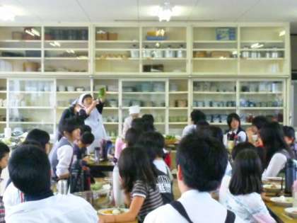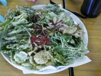 北桑田高校の方も加わって,「しゃくなげ」の方に山菜の説明をしていただいています。