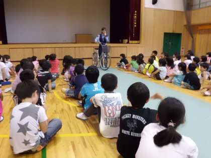 昼休みに警察署の方に来ていただいて,明日の自転車教室に向けて自転車の乗り方を教えていただきました。