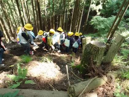 周山城址の見学に行きました。今,社会科で学習している明智光秀が地元に建てたものであることにみんな驚いていました。
