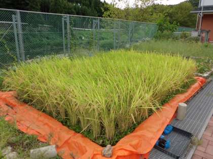5年生が5月に植えた稲が大きくなって,稲穂が垂れていました。