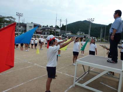 運動会の予行練習がおこなわれました。6年生はリーダーとして下級生を引っ張ってがんばってくれました。