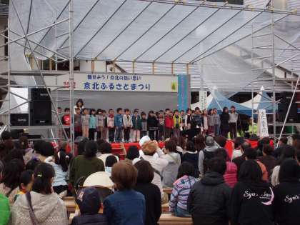 11月3日(土)に京北ふるさとまつりが行われました。会場は朝から大勢の人でにぎわいました。本校では,「まちの音楽隊」や「U−Kids」として出演した児童もいました。また,来年の4月から小学生になる保育所の子どもたちが元気でかわいい歌声を聞かせてくれました。