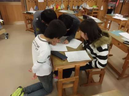 「失敗したこと」「怒られたこと」また,「うれしかったこと」「うまくできたこと」など,スチューデントシティで体験したこと,学んだことを思い出しながら,グループごとに発表内容をまとめています。