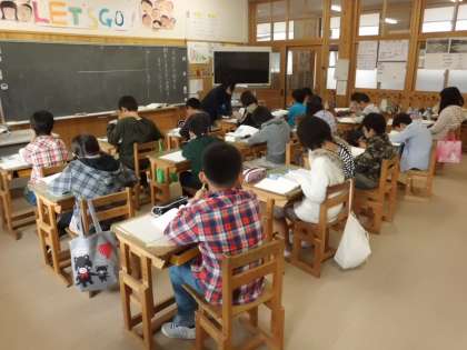 写真は3時間目の4年生と5年生の様子です。4年生は理科,5年生は国語の学習をしています。先生のお話をしっかり聞いて落ち着いて学習しています。どの学年も学習に励んでいます。