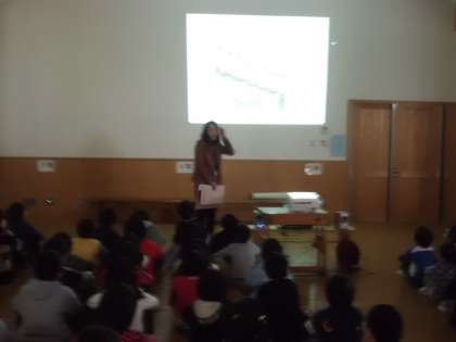 今日の朝会は,ほっとデイ。岸本先生からのお話です。目の不自由なマラソンランナーの伴走をする人のお話から,「してあげる」ではなく,「自分にできることは何か」を考えて行動することが大切だということを伝えられました。