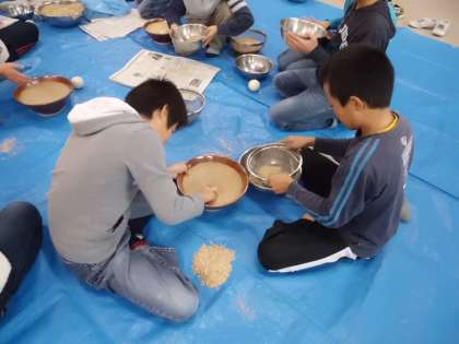 軟球を使って,もみ殻を取り除きました。思っていた以上に力がいり,