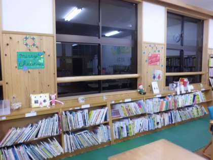 図書館支援員の先生,図書ボランティアの方々が中心となって図書室の飾り付けをしてくださいました。調べ学習をしている5年生も少し手伝ってくれました。いっそうすてきになった図書室です。これからもどんどん図書室を活用してほしいです。