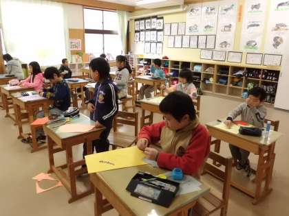 写真は3年生が「6年生を送る会」の飾りを作っているところです。また,午後には新1年生の一日入学と入学説明会を行います。送る準備,迎える準備と学校は春に向けて動いています。