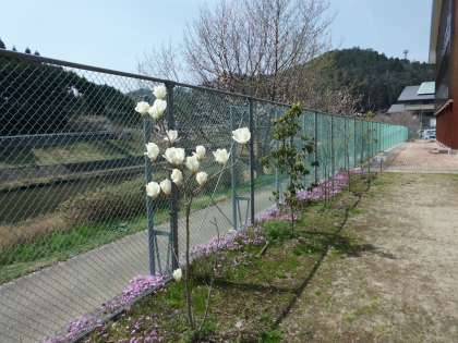 4月4日(木),今日は昨日までとは違って朝から太陽の光がまぶしいくらいのポカポカ陽気となりました。学校の周りの景色もすっかり春本番。校内の生き物たちも春の散歩を楽しんでいます。