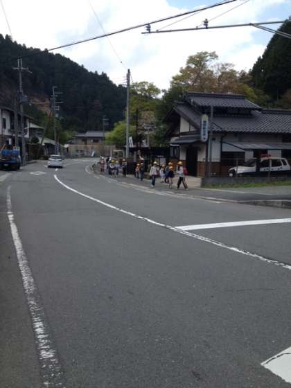 全員無事歩ききって細野に到着しました。これから次のお楽しみのお弁当です。