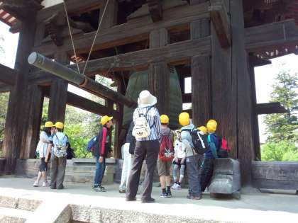 予定より少し早く到着し,グループに分かれてガイドさんについて回っています。奈良は,たくさんの人で賑わっています。